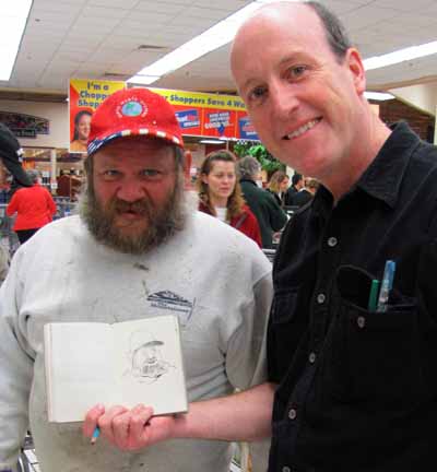 At the PriceChopper in Plattsburgh we got some turkey sandwiches. I saw a guy two aisles over in the checkout line who looked just like one of Henry Hudson's crew in Rip Van Winkle. I started sketching him, and when he noticed, I just told him: "I'm sketching your picture."