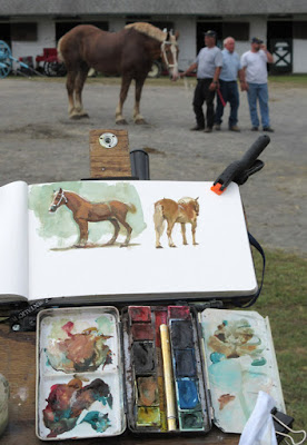 Sketches of the draft horses at the county fair. Gouache, watercolor, and fountain pen, 5 x 8 inches.