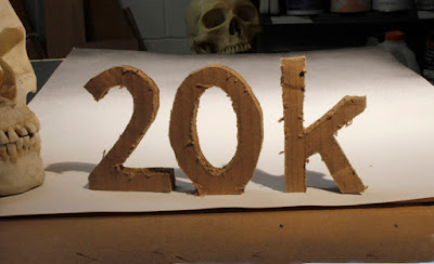 In this photograph, the "2" and "0" are made of cardboard, and the "k" is painted on the surface of the paper.