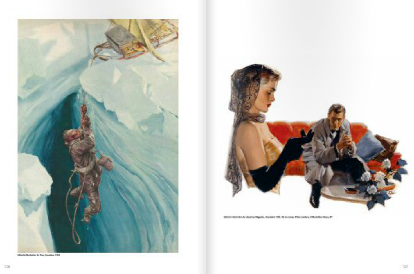 It includes the wide range of subjects: pretty women, male action, romantic subjects, and historical reconstructions. The book will include some scans of tearsheets so you can see how they appeared on the page. There's also some discussion of his method, with examples of his thorough preliminary sketch process.