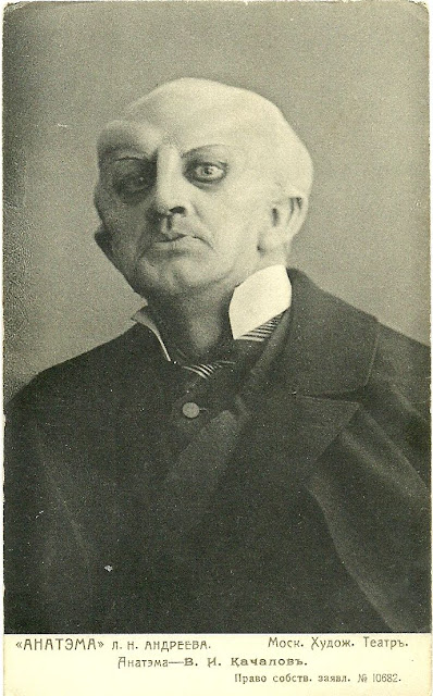 Actor Vasily Kachalov wore this startling makeup prosthetics as the lead character of the play "Anathema" in 1909.