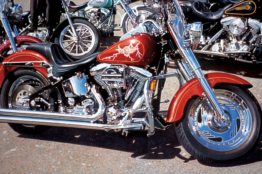 Beautiful work; I’m captivated by the blue sky reflection on the motorcycle wheel/hub.