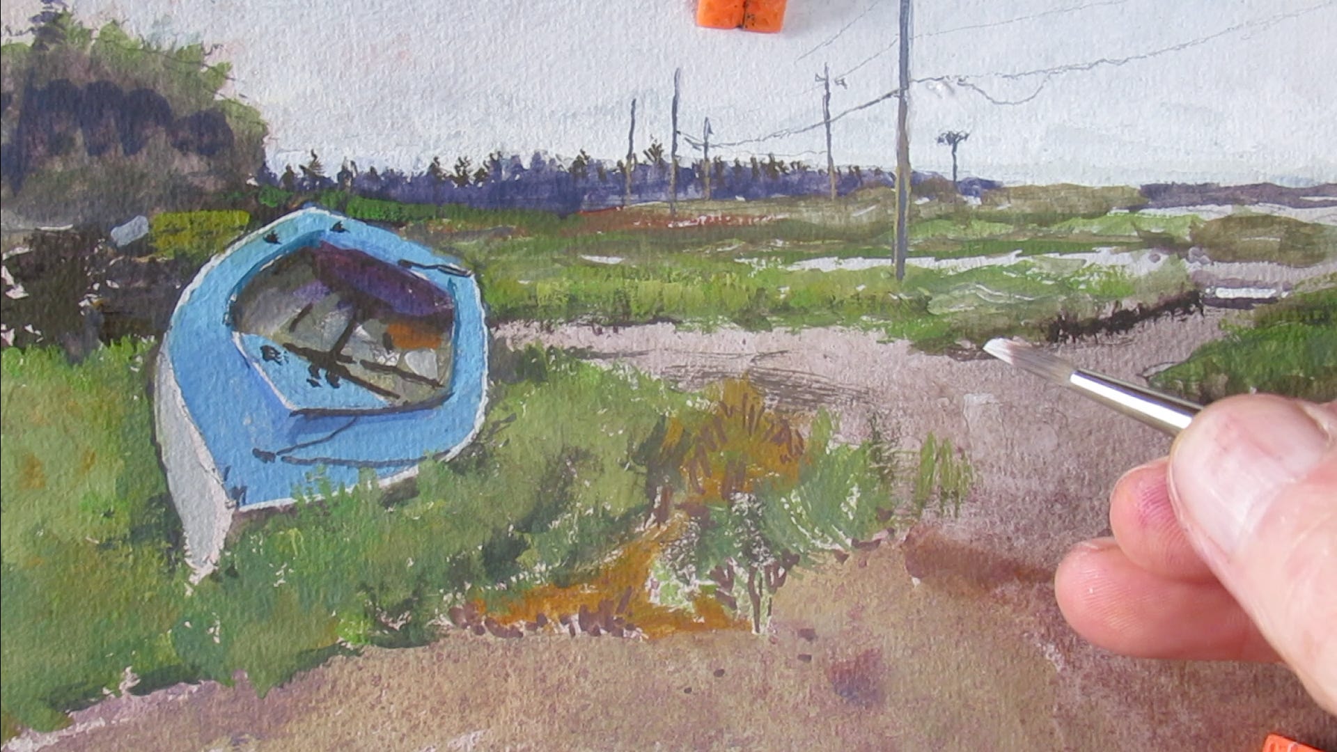 I’m editing a YouTube video, where I paint this little plein-air study of a stranded sailboat: