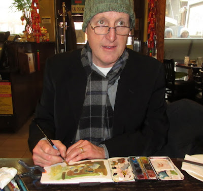 James Gurney painting a watercolor demo at SKB Foundation Workshop