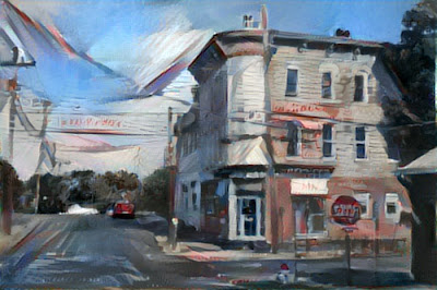 I thought I'd try it out by uploading a photo (left) and a closely related plein-air oil painting (right) to see what the algorithm comes up with.